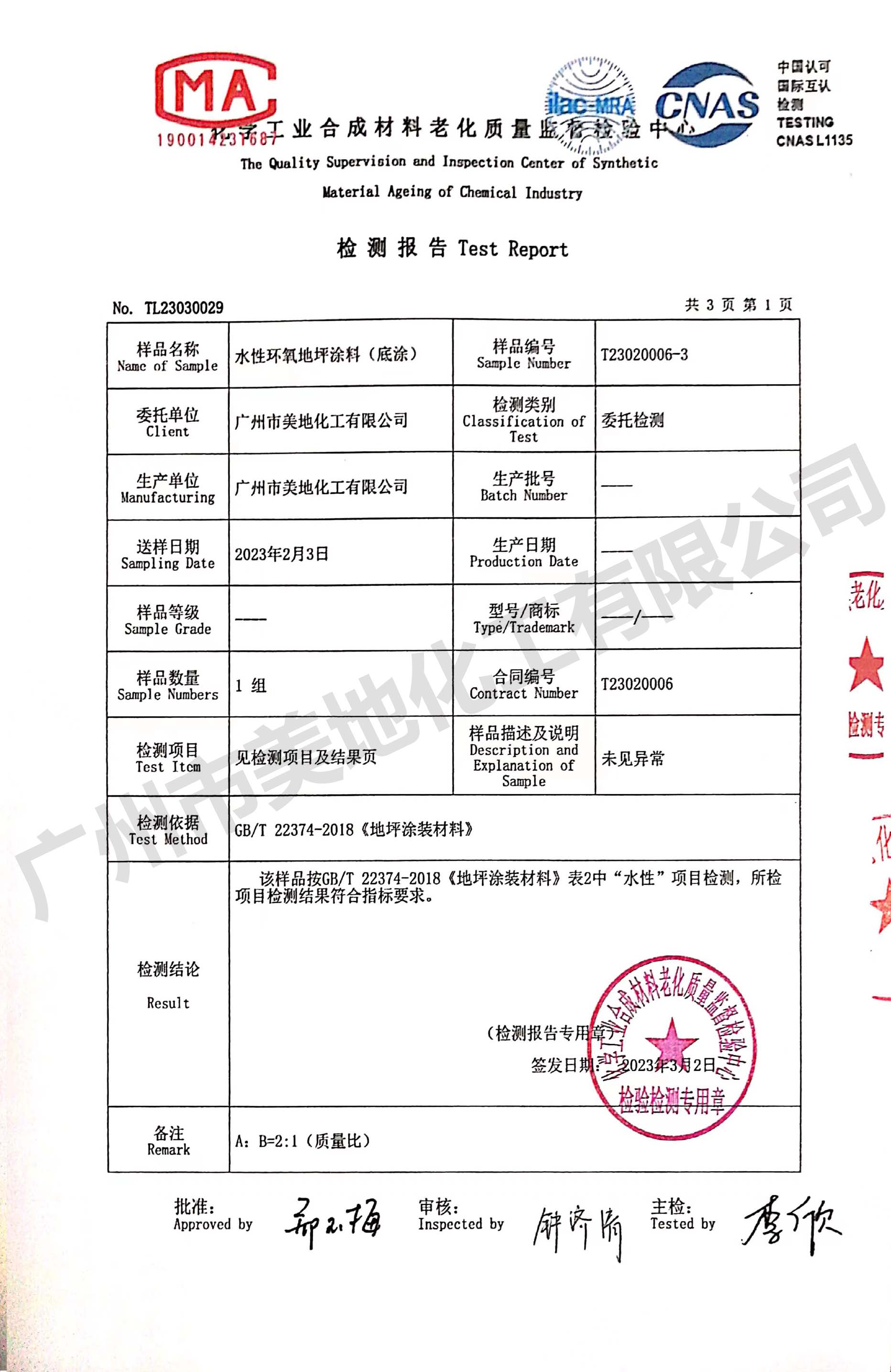 環(huán)氧自流平地坪漆檢驗證書